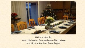 ![]() Die diesjährige Weihnachtsfeier fand in unserm weihnachtlich geschmückten Bridgeraum statt. |